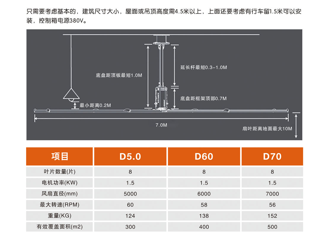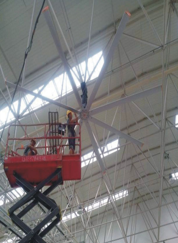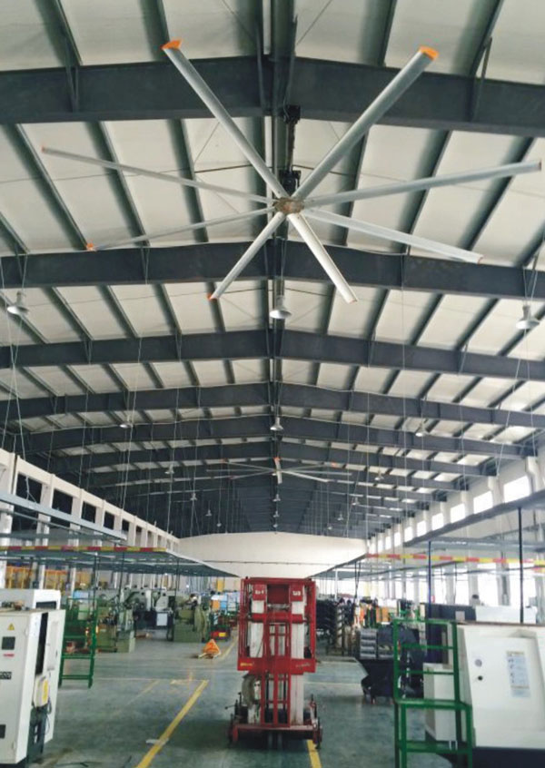 大型工業(yè)吊扇直徑達(dá)5-7米,功率為1.5千瓦,風(fēng)力柔和、無噪音,能滿足200-500平方米的室內(nèi)降溫、通風(fēng)等要求。