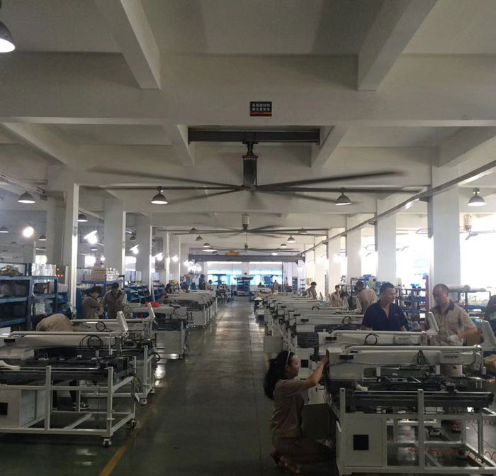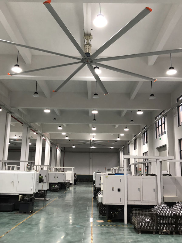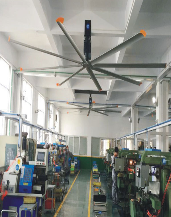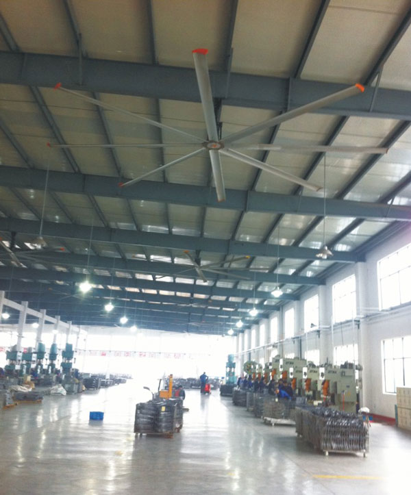 我公司生產(chǎn)的大型工業(yè)吊扇直接懸掛在廠房屋梁下,風(fēng)力柔和,能加快車間空氣流通,有效降低車間內(nèi)溫度,改善車間空氣環(huán)境質(zhì)量,有利于員工的身體健康。